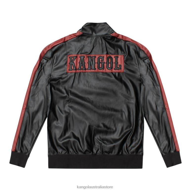 Men Clothing Black Beauty Kangol Vegan Leather Track Jacket V0X8T1160