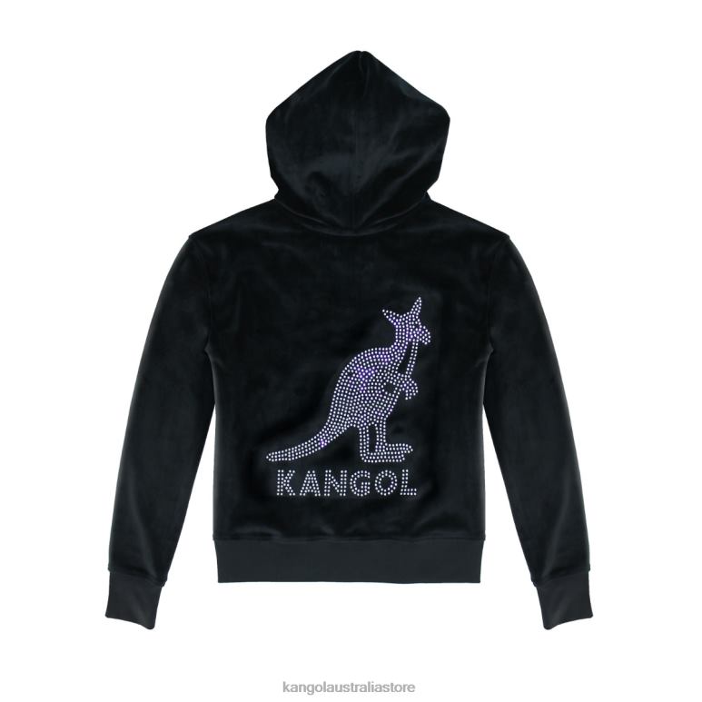 Women Clothing Black Beauty Kangol Velour Crystal Zip Hoodie V0X8T1141