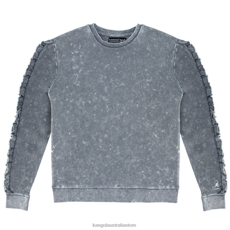 Women Clothing Black Beauty Kangol Acid Wash Ruffle Popover V0X8T1174