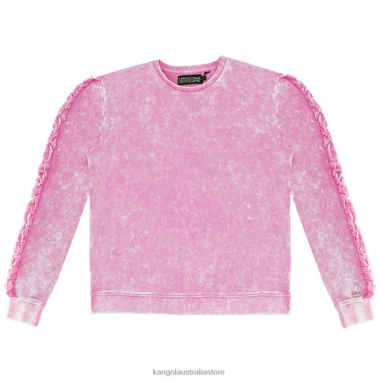 The Acid Wash Ruffle Popover is a cool, crew neck pullover featuring a ruffle detail going down the sleeves. Crafted from a French Terry and in a cool acid wash, it is finished with a rib cuff and hem and our signature kangaroo logo embroidery on sleeve. The Acid Wash Ruffle Popover fit is based on a women's size chart. Please note: clothing will ship separately from headwear orders.